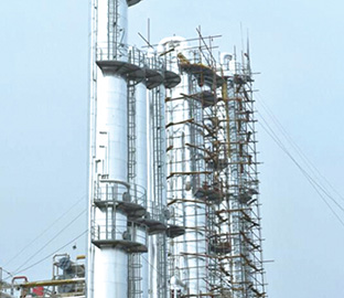 塔设备能够为气、液或液、液两相间的充分接触提供适宜的条件,经过充分 的接触时间、分离空间,实施相间传质、传热的过程,从而起到相间质量和 热量交换的目的,实现工艺所要求的生产过程,生产出合格的产品。可按塔 设备所承受的压力进行设计。所采用的材料必须对被处理的物料具有耐腐蚀 性能。塔内件有:各种填料类:金属填料、塑料填料、陶瓷填料、鲍尔环、 矩鞍环等。各种除雾器、除沫器、分布器、喷淋器、分离器等。各种泡罩、 泡罩塔板、浮阀、浮阀塔板、龟甲板等。本公司制造过各种蒸馏、吸收、萃 取、吸附等塔斯社,其中最大的塔是:DN3200×32000的皂化塔,材料: Q345R+316L,设计压力:-0.1Mpa,设计温度:150℃,厚度:30mm。